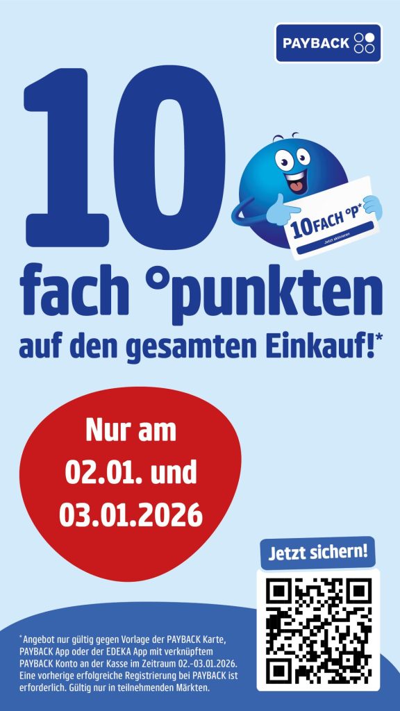 Aktiviere Deinen Coupon und sichere Dir jetzt am 02.01. und 03.01.2026 10-fach Punkte auf den gesamten Einkauf.